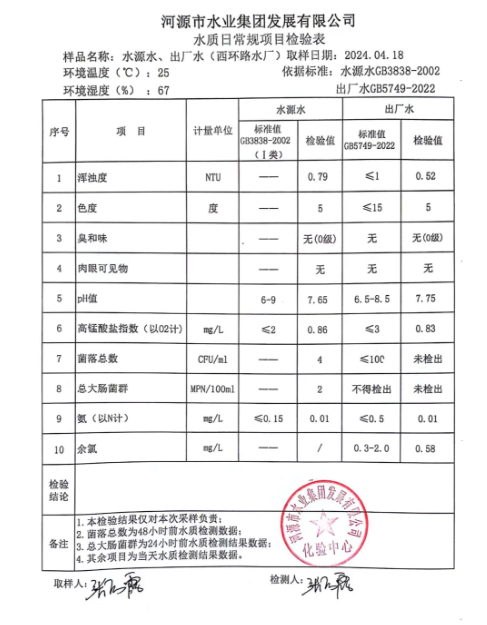 2024年4月18日水質(zhì)檢驗(yàn)報(bào)告
