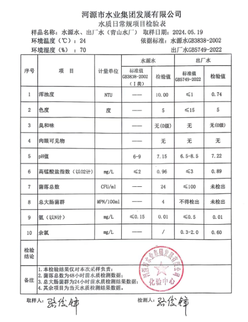 2024年5月19日水質(zhì)檢驗(yàn)報(bào)告 ???
