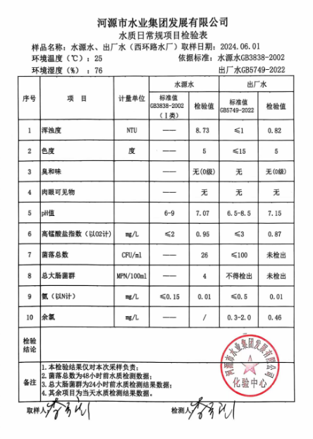2024年6月1日水質(zhì)檢驗(yàn)報(bào)告 ???