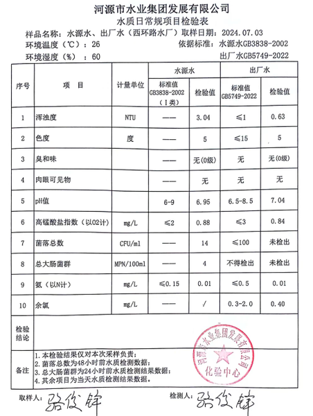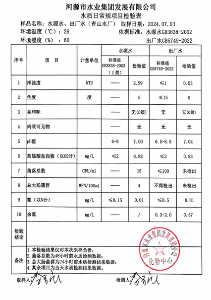 2024年7月3日水質檢驗報告