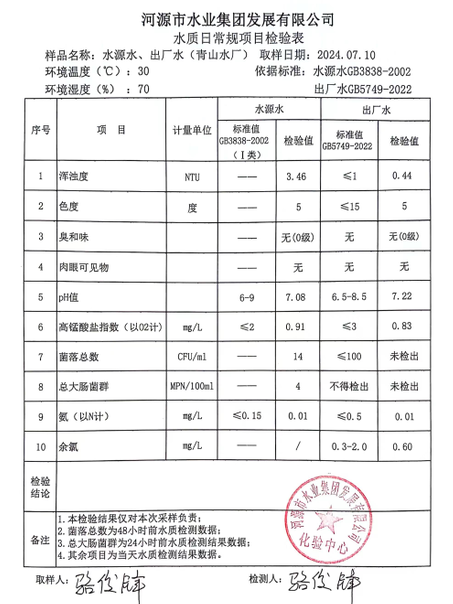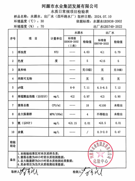 2024年7月10日水質檢驗報告