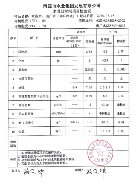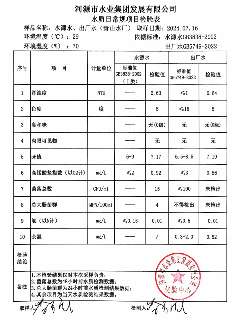 2024年7月16日水質檢驗報告