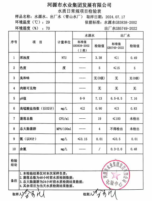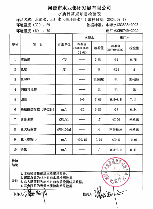 2024年7月17日水質(zhì)檢驗(yàn)報(bào)告