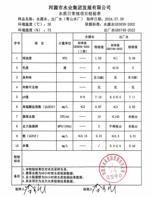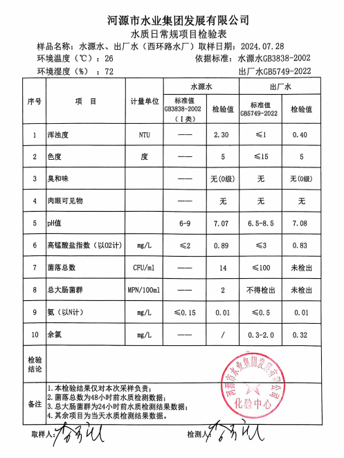2024年7月28日水質檢驗報告