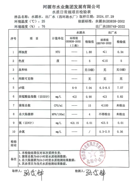 2024年7月29日水質(zhì)檢驗(yàn)報(bào)告