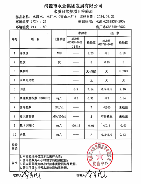 2024年7月31日水質(zhì)檢驗(yàn)報(bào)告