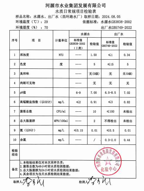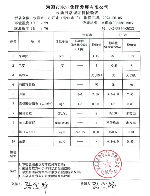 2024年8月5日水質檢驗報告