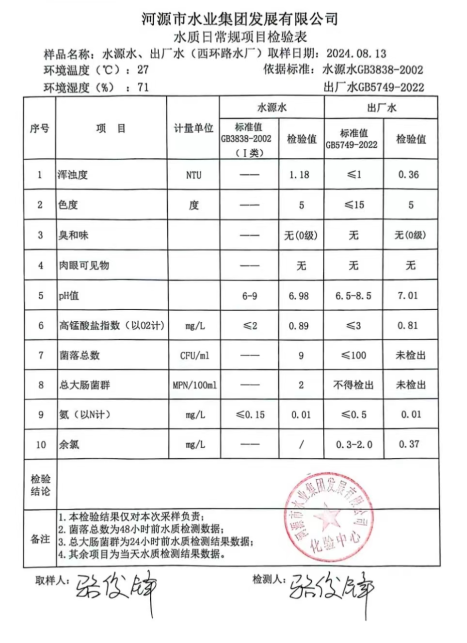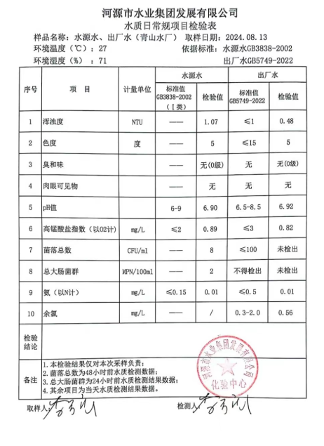 2024年8月13日水質檢驗報告