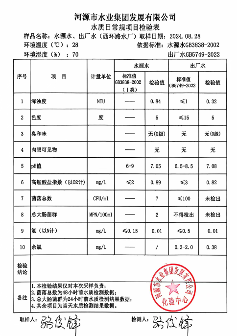 2024年8月28日水質(zhì)檢驗報告