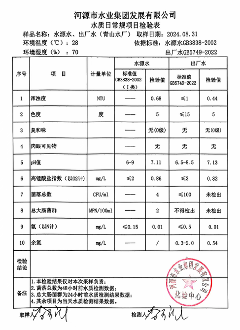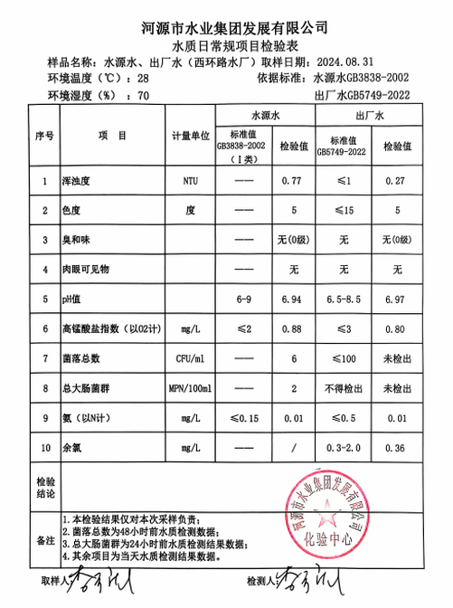 2024年8月31日水質(zhì)檢驗報告