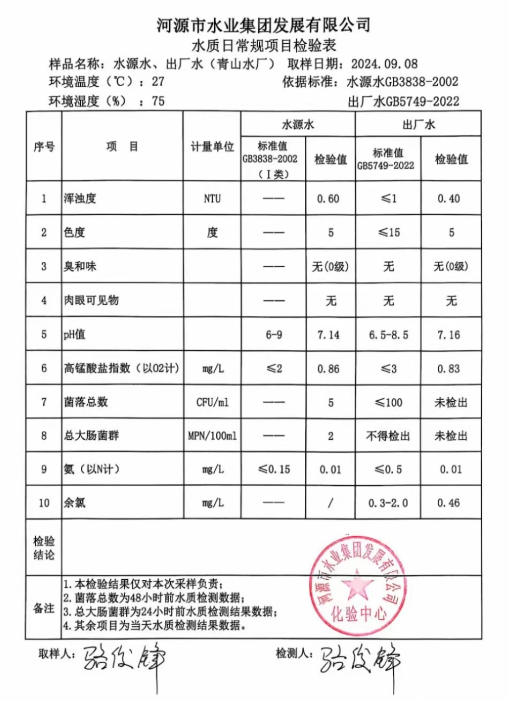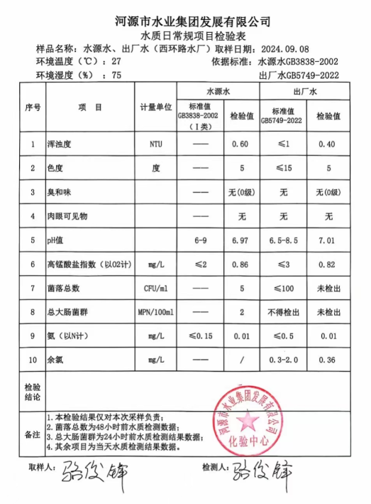 2024年9月8日水質(zhì)檢驗報告