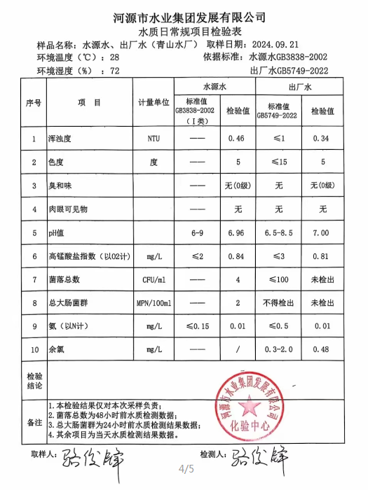 2024年9月21日水質檢驗報告