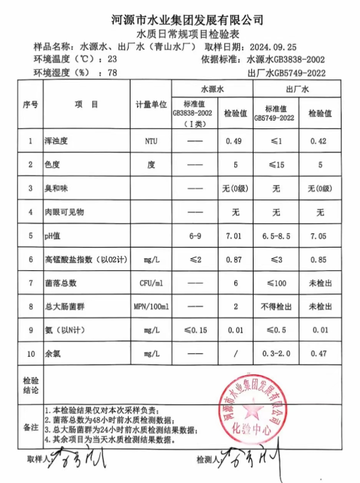 2024年9月25日水質檢驗報告