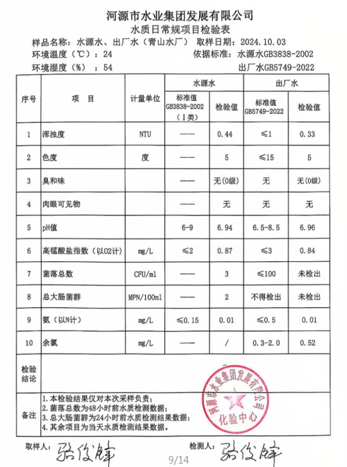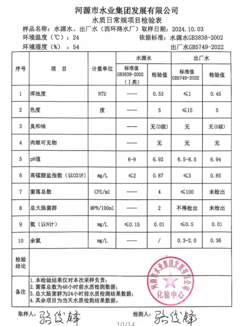 2024年10月3日水質檢驗報告
