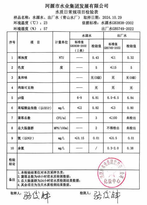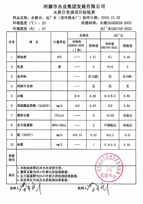 2024年10月29日水質檢驗報告